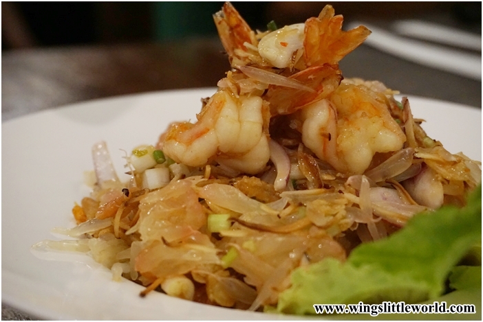 食泰菜又怎少得了一碟沙律呢~?我們點了泰式柚子蝦沙律。蝦夠新鮮夠大隻,十分爽口的。柚子的份量夠多的,加上泰式的酸酸甜甜的醬汁,在吃晚餐前用來吊吊胃口,是不錯的選擇~