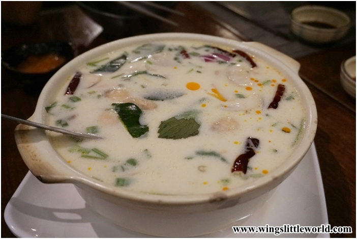 原來這個椰汁雞湯帶點點酸辣的,又有撲鼻的椰汁香氣,即使是夏天這個不想喝熱湯的季節,我也忍不住要多喝兩口呢~!!!不得不提的是這個湯入面的材料多又多,雞充滿了淡淡的椰汁香味,啖啖肉的,很棒~!!