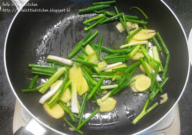 3. 燒熱油,放入薑片及蔥段炒至出味。