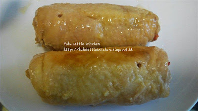 4. 雞卷隔水蒸約25分鐘,取出雞卷以冰水浸一會。