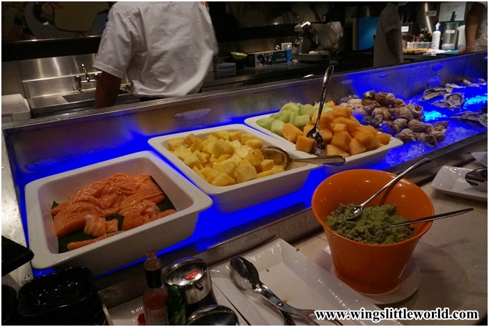 接近海鮮那邊,有三文魚刺身、我最愛的菠蘿,跟哈蜜瓜、蜜瓜。今次我竟然沒有衝動吃刺身,反而吃多了水果,也許是因為平日的蔬果不足吧。菠蘿就不用說啦,我如果喜歡它,吃多了很多件啦,酸酸甜甜,十分多汁的,夏天吃一流啦;至於哈蜜瓜跟蜜瓜呢,鮮甜多汁,用作飯後果一流啦~!!