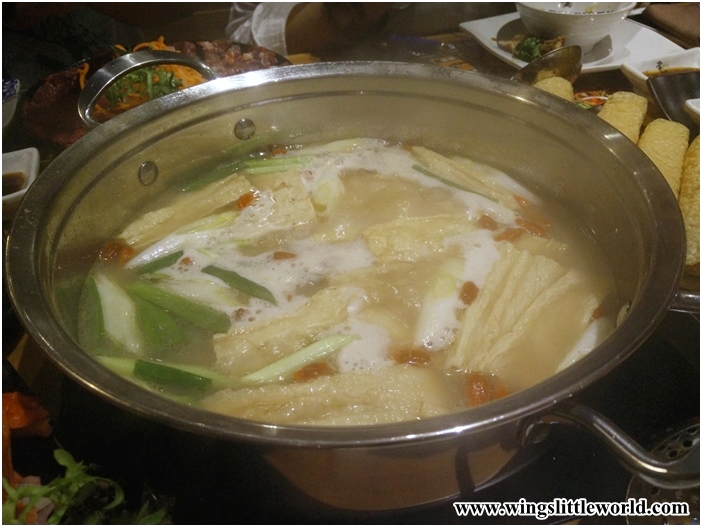 吃過雞煲以後,我們點了個藥膳鍋來吃。沒法子啦,秋風起,就是要滋補身子的時候啦。這個藥膳鍋主要以花旗參作為材料,煲好以後香氣撲鼻,香氣中還帶點甘香。飲落去感覺十分滋潤,頓時解決喉嚨乾涸的問題。花旗參那份淡淡的甘香留在喉嚨內久久不散,味道又討好,叫人喜歡。