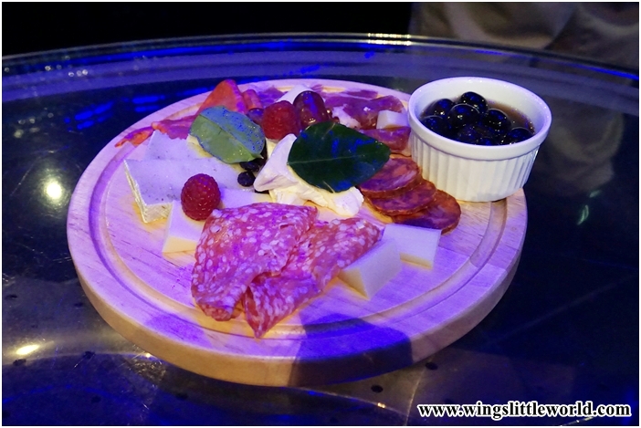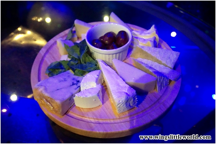 Cheese Platter中有Brie(布里芝士)、Blue Cheese(藍芝士)、Cheddar(車打芝士)、Camber Melt Cheese(康貝半溶芝士)、Chardonnay and Merlot Grape(霞多麗,梅鹿輒葡萄),很愛Blue Cheese跟Cheddar的味道,特別濃郁,酒精把芝士的味道更突出;Camber Melt Cheese那個在口腔中溶化的感覺,質地十分軟滑,也蠻細膩的~