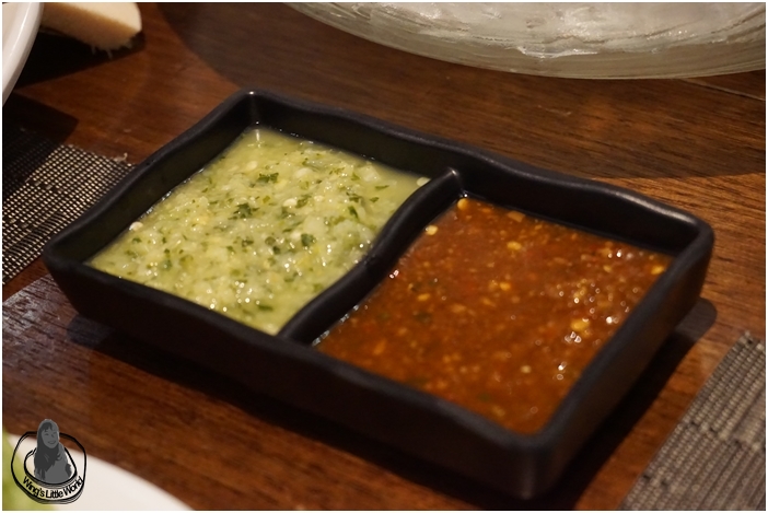 左邊綠綠地色的是青檸汁,帶點酸酸的,也蠻開胃的丫,而且青檸味也蠻出的;右邊紅紅地色的是燒汁,其蒜味也蠻重的,用來點刺生身,把魚生的鮮味逼出來,吃著也會帶點泰式的感覺~