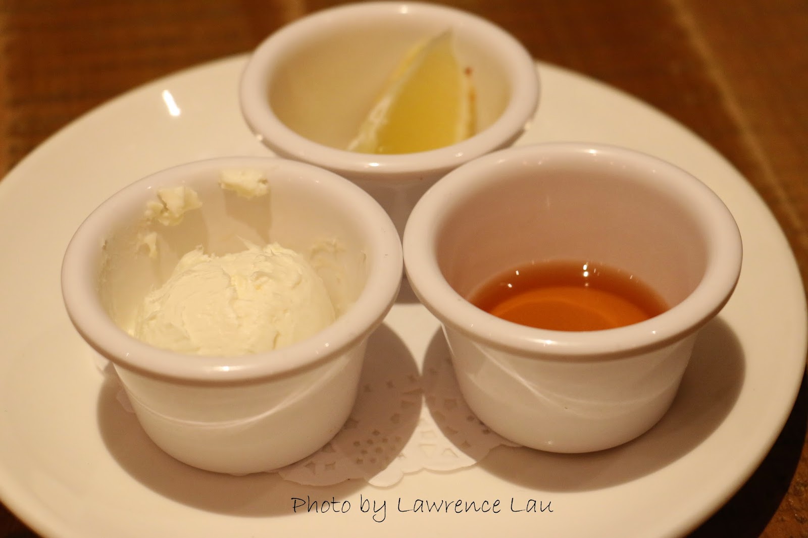 柔軟熱燙,色泛金黃而又間雜著咖啡色澤的班戟,微帶焦香,上面再灑上少許白色的糖霜,用刀切開之後,塗點隨班戟附上的忌廉芝士,榨點檸檬汁,再倒點楓糖漿,趁熱放進口中,熱、暖、甜、軟、鹹、酸、香,味覺、嗅覺、觸覺,視覺同時都在感應和享受,雖然這天的班戟有少許黐底,沒有自己第一次來的時候那麼驚艷,仍然好吃,不過整件班戟其實不太大塊,兩個人分享可真有點不夠呢!