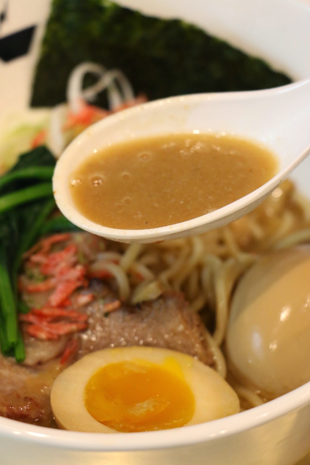 說回拉麵,這麵的湯味確實是十分濃稠的,不過喜歡濃郁豚骨湯味的我,就稍嫌它的蝦味太搶,把豚骨湯的味道掩蓋過去,不太適合自己的口味。