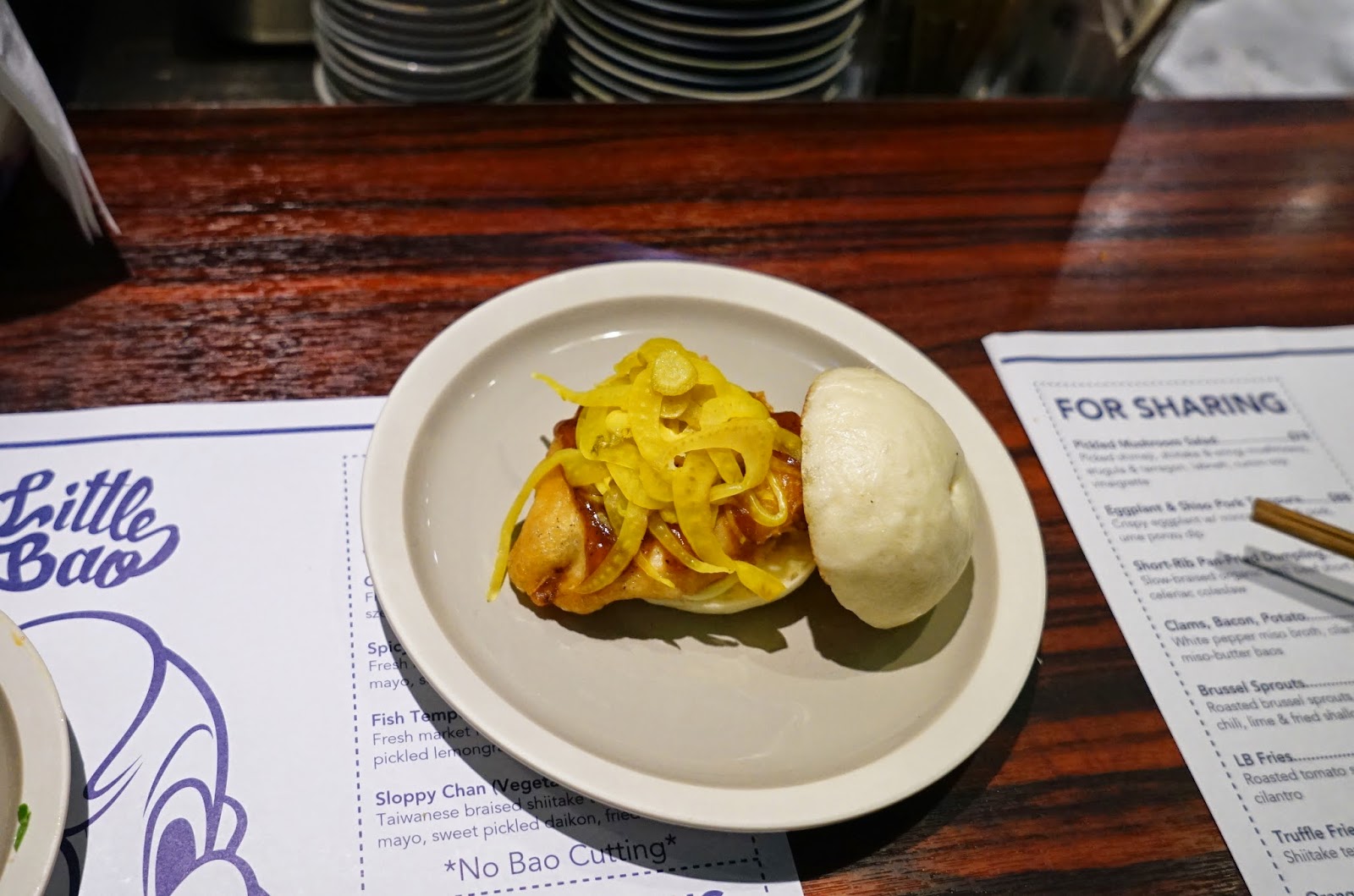 小儀網上推介Little Bao, 所以今晚我們走到PMQ後門的一家小店食包包.  這店中文譯名攪笑地叫"小包包".