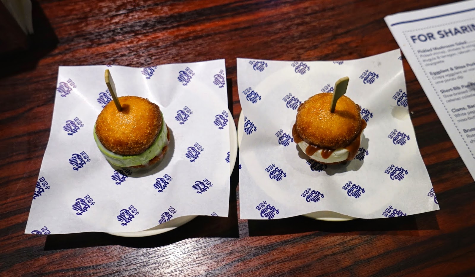 雪糕有兩款, 分別是綠茶配煉奶及海鹽配焦糖兩款, 不過放涼了的炸饅頭實在太硬, 很難食, (其實雪糕也一樣雪得頗硬)...,  唯一可以說是煉乳配綠茶, 味道原來很不錯.