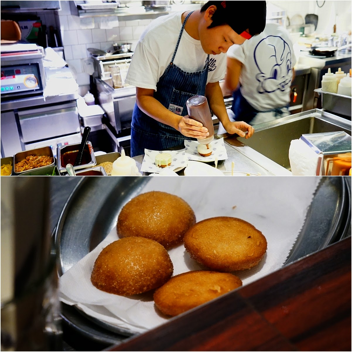 最後就是為此而來的「LB Ice Cream Sandwiches」 , 店員在我們入坐時提醒 :「如果要食LB, 一定要現在點, 因為要做好耐架」, 真的沒錯, 足足「煮」足10分鐘以上, 因為店員要將小饅頭炸完, 再放涼約5分鐘才配上雪糕.