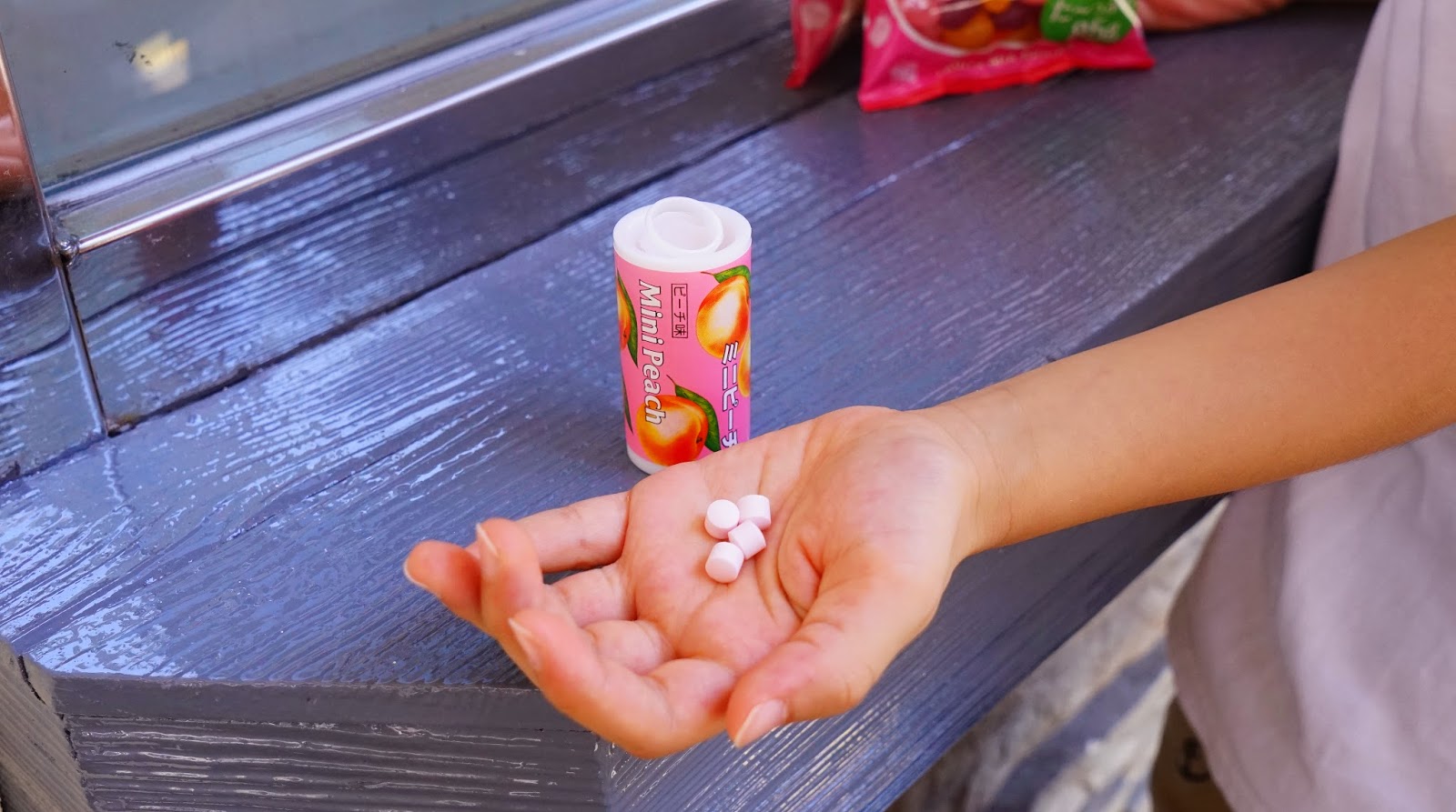 Orion香桃味果汁糖,正正就是童年時的可樂糖包裝,細細粒水蜜桃果汁糖,絕對有提神醒腦作用。