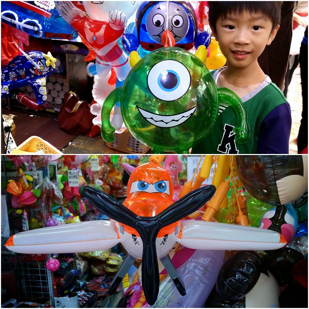老實說,我真的不明白,為何這是塑膠吹氣燈籠如此能吸引小朋友,不過,如果你想知今時今日,最流行的小朋友偶像是誰,看看店舖於最當眼處放置的吹氣燈籠就可知道。今年的大眼仔,飛機德仔,變形金剛也不太受歡迎。