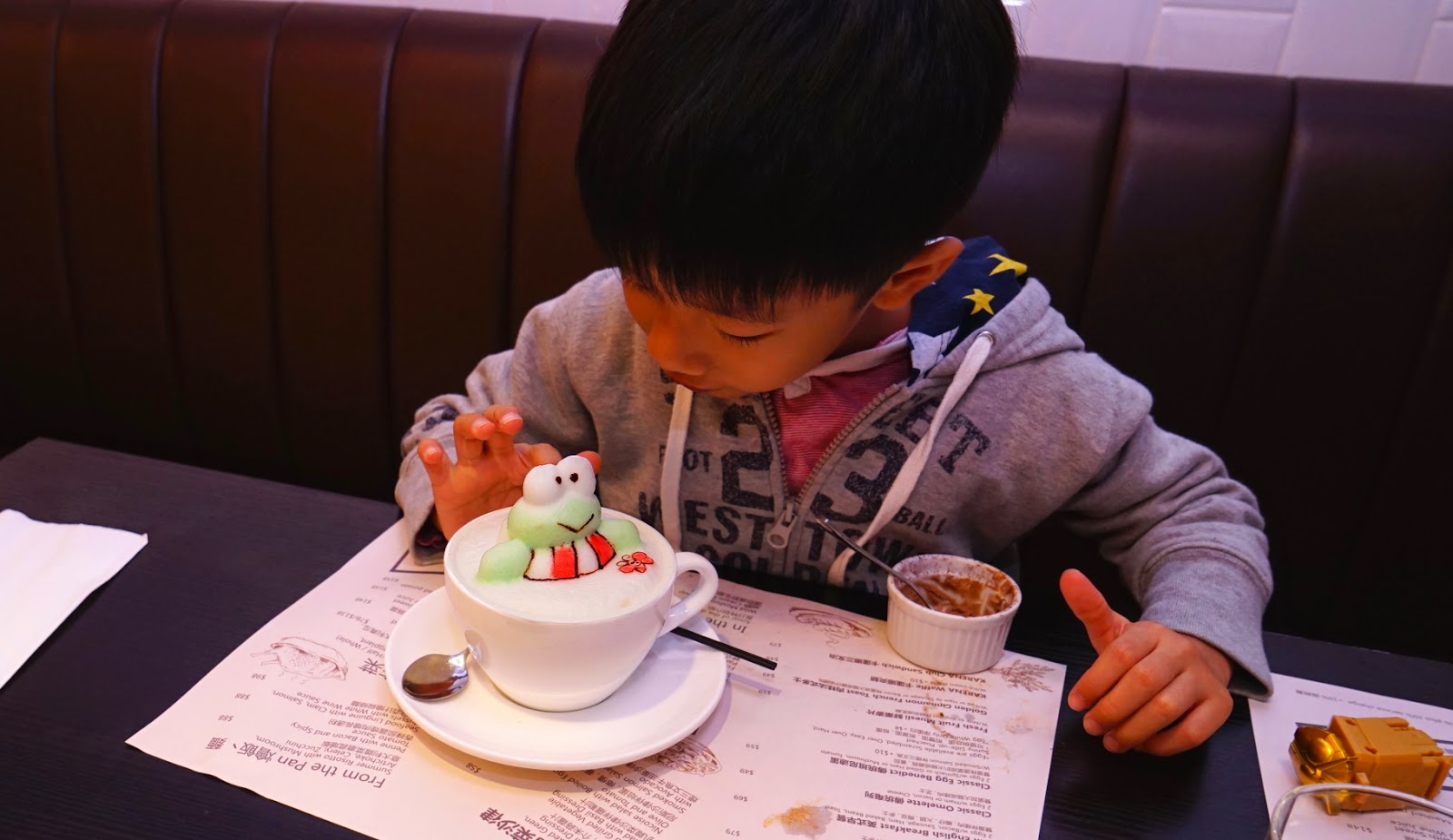 這裡特別在於不單止Cappuccino有拉花, 就連朱古力一樣可以配3D拉花。你睇隻Keropii可愛到。。。明天我同大家齊齊向大師Leo偷師學拉花!!