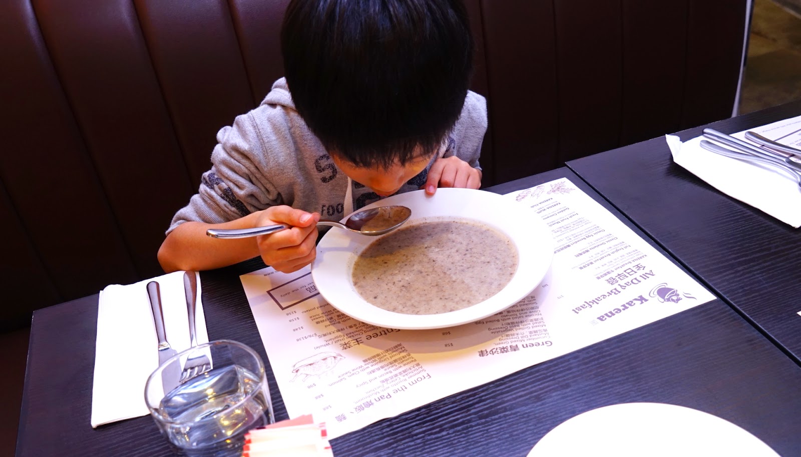 店內沒有紅湯供應, 只有忌廉野菌湯, 我愛忌廉湯, 只是阿太想羅宋湯多一點。。。而揀飲擇食的小朋友也將忌廉湯喝得一乾二淨, 就知這碗湯如何吸引。