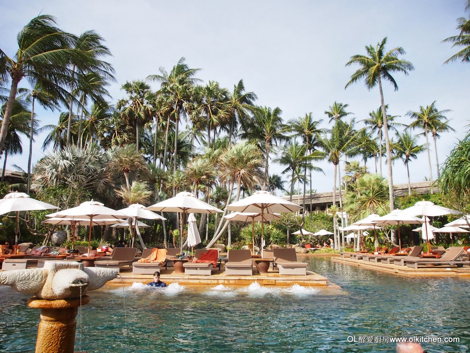 這裡的設施一應俱全,有11家中西日泰食肆及酒吧,吃的部份完全不用擔心。3個泳池、水療中心、烹飪學校、 健身房、 網球場、兒童中心等等,真是要認真體驗全部設施的話,應該要住上好幾天,榮獲Travel + Leisure World’s Best Awards 2014,最佳亞洲家庭酒店( Family Hotel in Asia)也是實至名歸的。