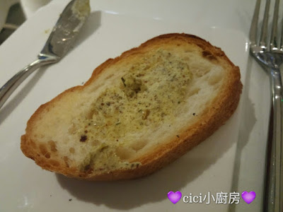 首先上檯的是麵包袋。 大家沒有聽錯,麵包用袋上而不是籃。 袋內的麵包十分鬆軟,配上自家製牛油十分可口。