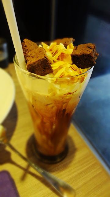 飲品方面,我點了果仁布朗里朱古力,個人認為味道只是一般,上層的brownie粒粒可能是雪得太久,入口時有點雪味。