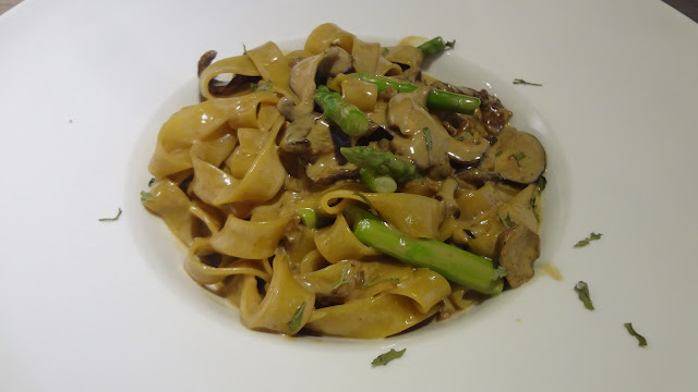 說實, 我極愛牛肝菌獨有的香味,所以覺得這個軟芝士牛肝菌寬條麵超級美味,基本上每一口寬條麵都帶有濃郁的牛肝菌香味,而且內裏還放有新鮮的露筍及雜菌,令口感層次大大提升。不過,由於寬條麵用上大量的軟芝士,所以吃後感覺有點膩。