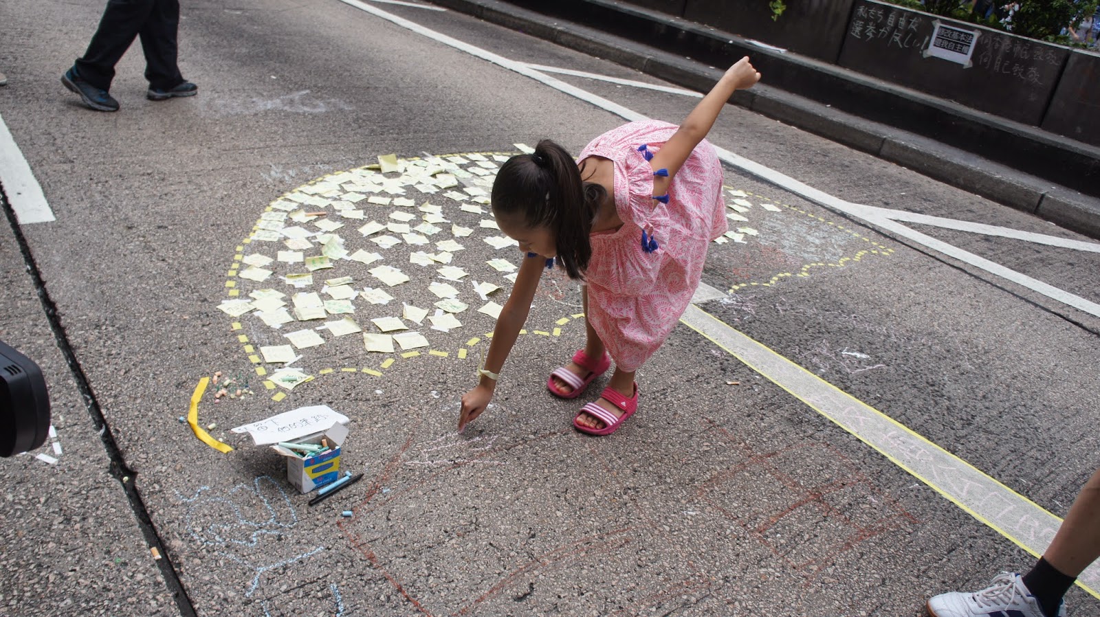 而有心人更在地上畫上兩大把兩傘跳飛機, 大家可以在記事紙上寫上對政府的心聲.