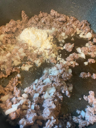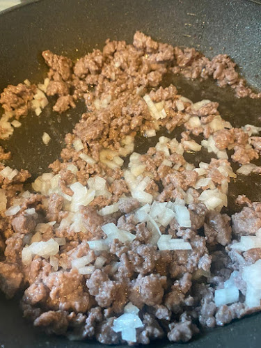 牛肉碎先用鹽撈勻、加少少黑椒及片栗粉撈勻