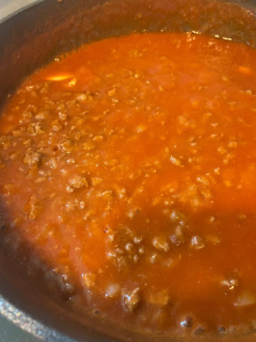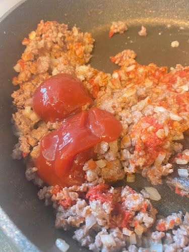 加入茄膏兜勻後再加茄汁兜勻成膏狀,然後再加水