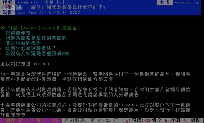 2015-8-14 16:39 上傳 下載附件 (553.02 KB) 作者 ohmylife (小弟「o」) 看板 Gossiping 標題 Re: [請益] 開喜烏龍茶為什麼不紅了? 時間 Sun Feb 11 19:40:14 2007───────────────────────────────────────