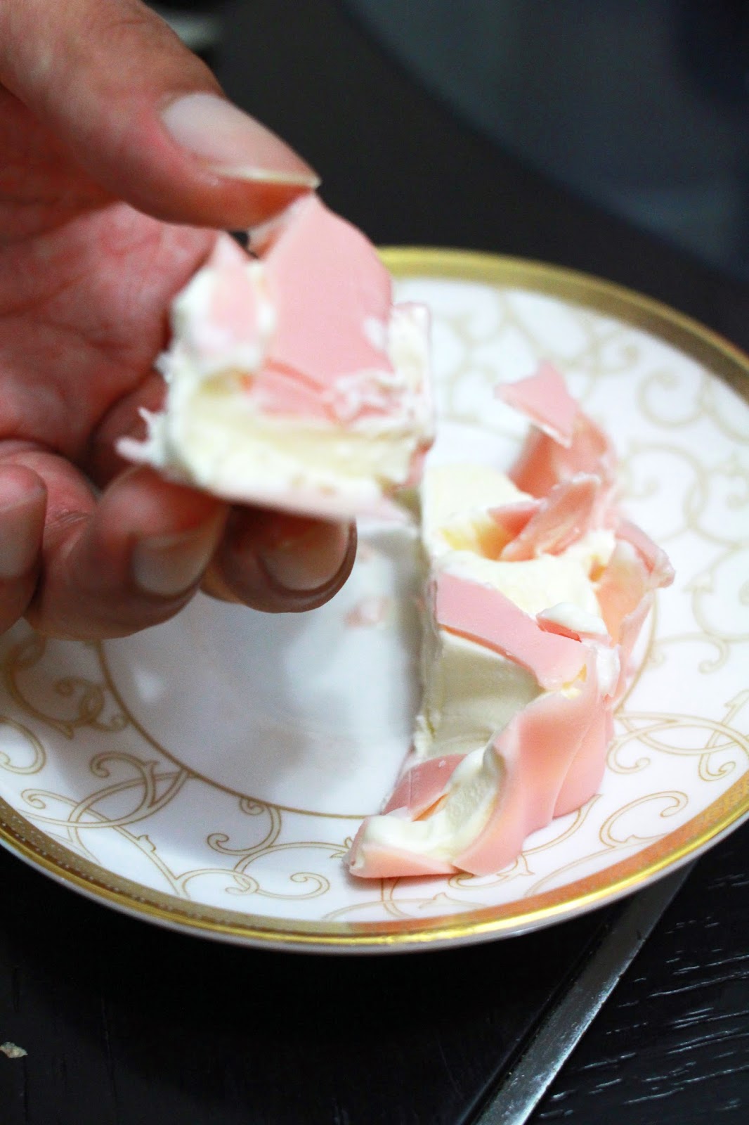 有看 Twelve Cupcakes 的朋友可能會估到,Matthew又是選擇Pink!不過今次為食豬又真的幾有眼光,因為粉紅色的白朱古力外層中,是十分香濃美味的濃香牛奶雪糕,又香又滑好吃不得了,只得一件真不夠喉啊!