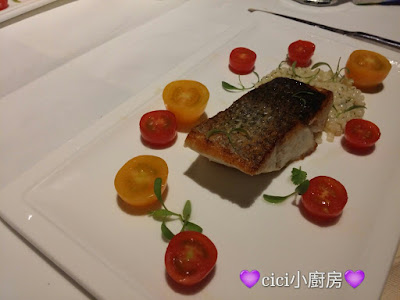 跟著第一道菜,Amuse Bouche。 廚房精緻地將鮮甜的帶子,拌上清爽的青瓜片、 魚子醬,配上黑醋和沙律醬,味道來得鮮甜清新美味。