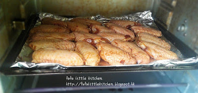 2. 預熱烤箱,以200度將雞翼烤10分鐘。