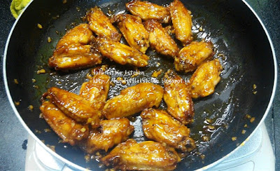 4. 將雞翼倒到汁料的平底鍋中炒勻,即可上碟。