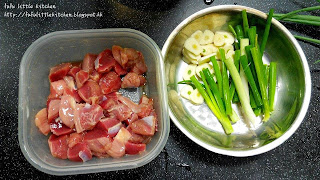 雞腎4個、韓式辣醬1茶匙、蒜頭2瓣(切片)、蔥1扎(切段)